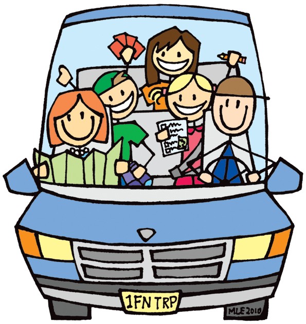 Someone flips over the back row of the van…the way boys do, making sure their feet kick someone in the head.